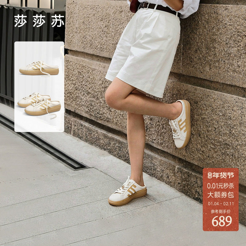 [马卡龙]莎莎苏2025春夏新款一脚蹬后空半拖凉鞋包头拖鞋外穿女