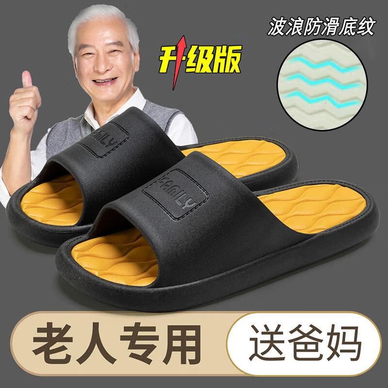 DFBK日本工艺老人防滑防摔拖鞋浴室洗澡专用中年老人居家用防臭送爸妈 升级版黑黄【强力抓地耐磨止滑】 42-43 【适合41-42码】