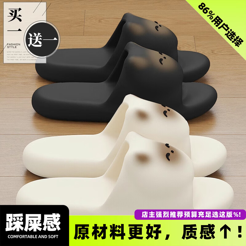 QYCKABY买1送1拖鞋女款四季室内家居浴室防滑防臭可爱情侣一对eva凉拖男 白色+黑色【2.0踩屎感升级款】 36-37 女+男42-43