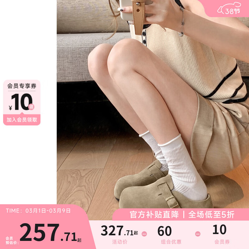 苏茵茵5.5cm增高版复古真皮软木厚底扣带包头勃肯拖鞋女半拖 鼹鼠色 半拖 单里 36