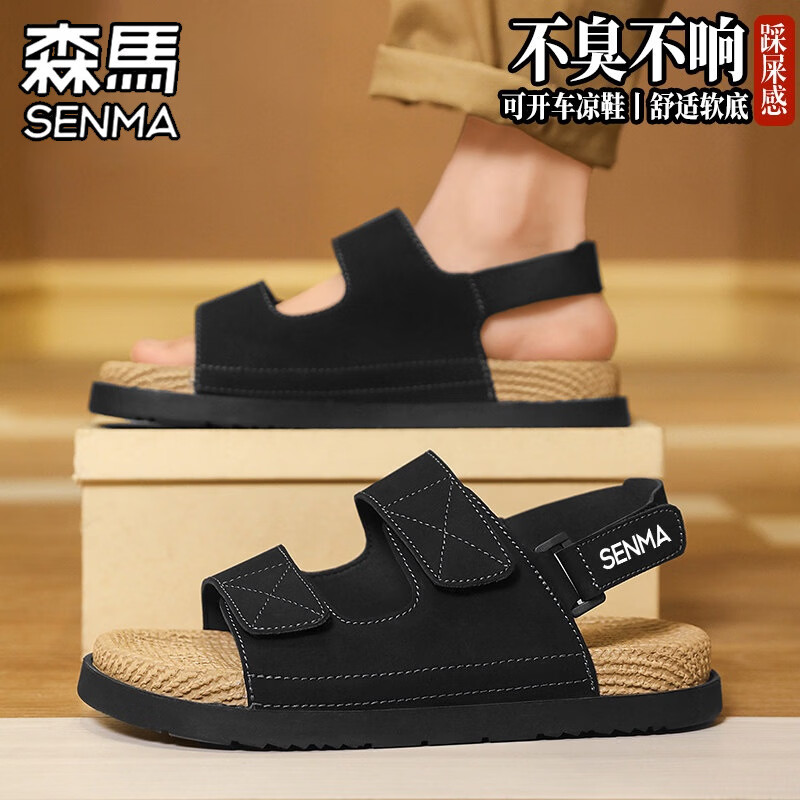 森馬沙滩凉鞋男夏季2026新款防滑软底轻便博肯凉鞋户外开车黑色凉拖鞋 黑色 43