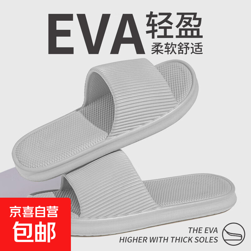 新款 室内夏季女凉拖鞋外穿踩屎感女士拖鞋eva男防滑厚底拖鞋家居 灰色 42-43