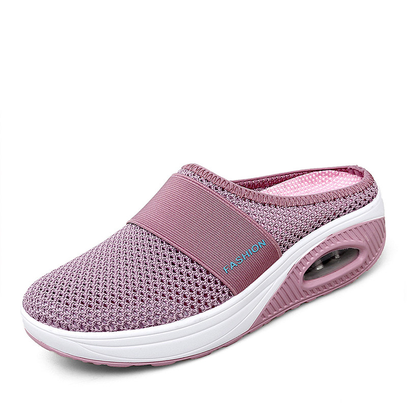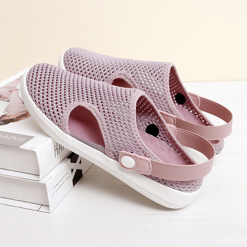 夏季老人防滑拖鞋女老年q人室内软底包头半拖鞋网面透气妈妈凉拖