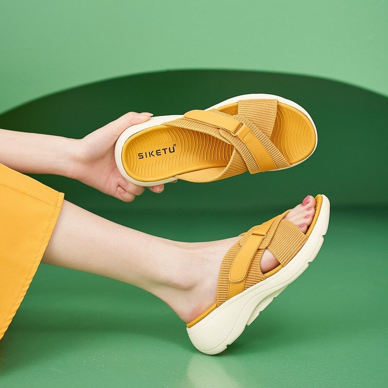 拖鞋女夏时尚外穿2024新款x坡跟厚底沙滩凉拖鞋妈妈鞋防滑超轻软