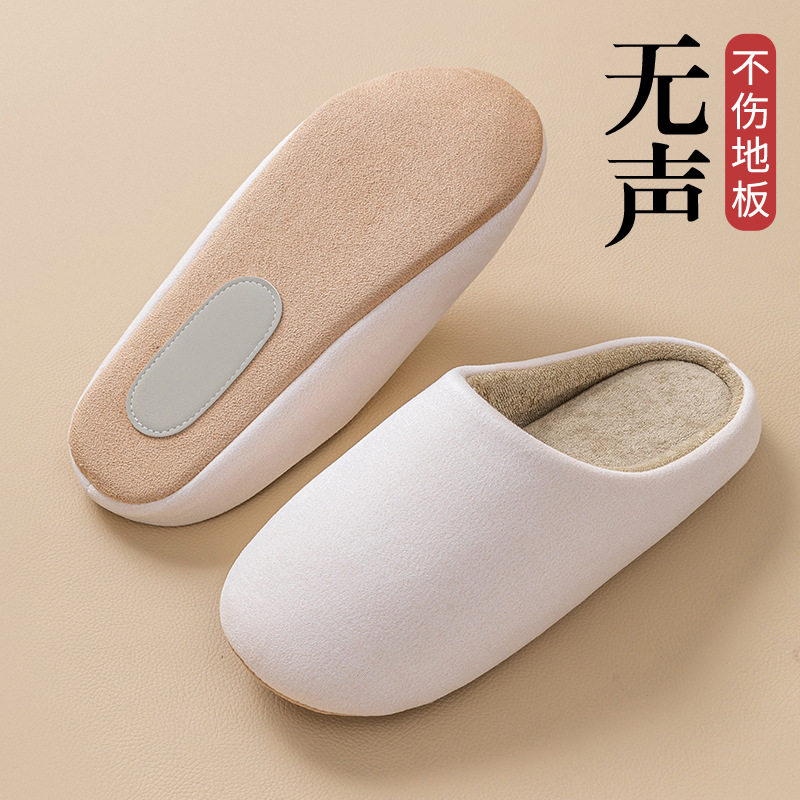 四季日式居家室内软底防滑无声男女士棉拖鞋情侣地板纯色静音拖鞋
