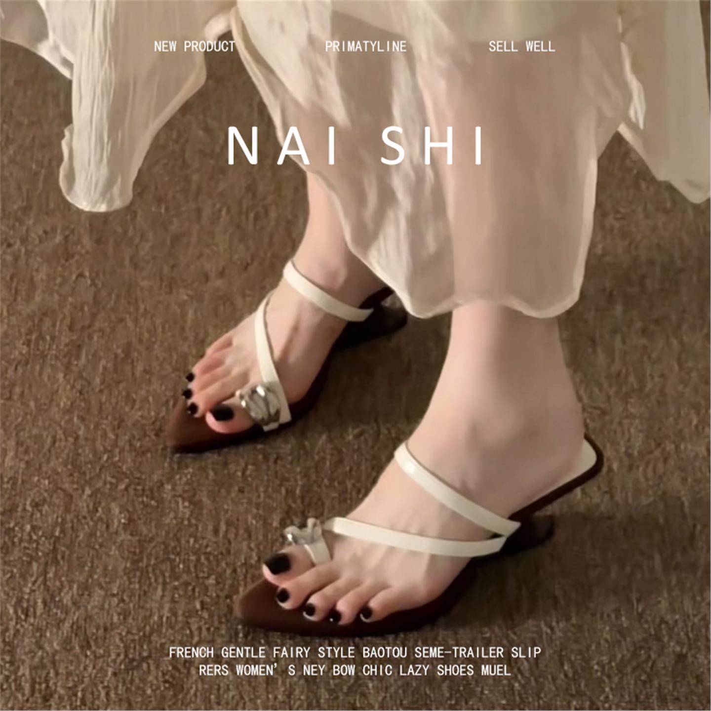 羊皮版!法式金属套趾凉拖鞋女夏外穿时尚搭长裙坡跟高级感凉鞋