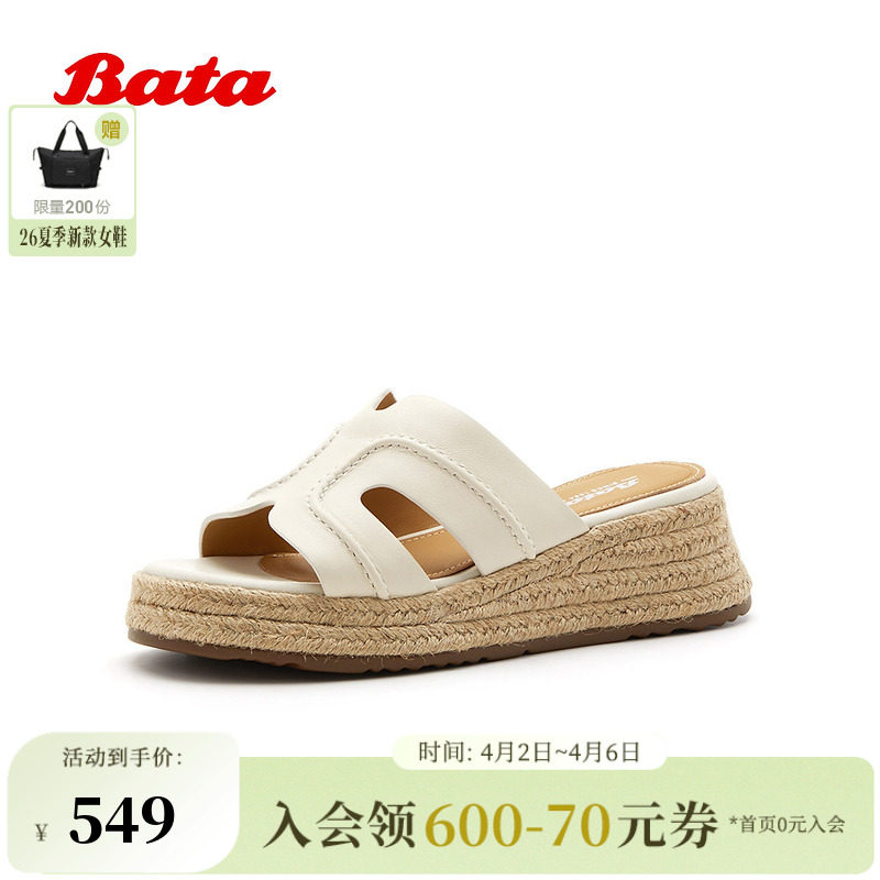 Bata一字拖女2026夏商场新款时尚厚底编织风休闲度假拖鞋86017BT6