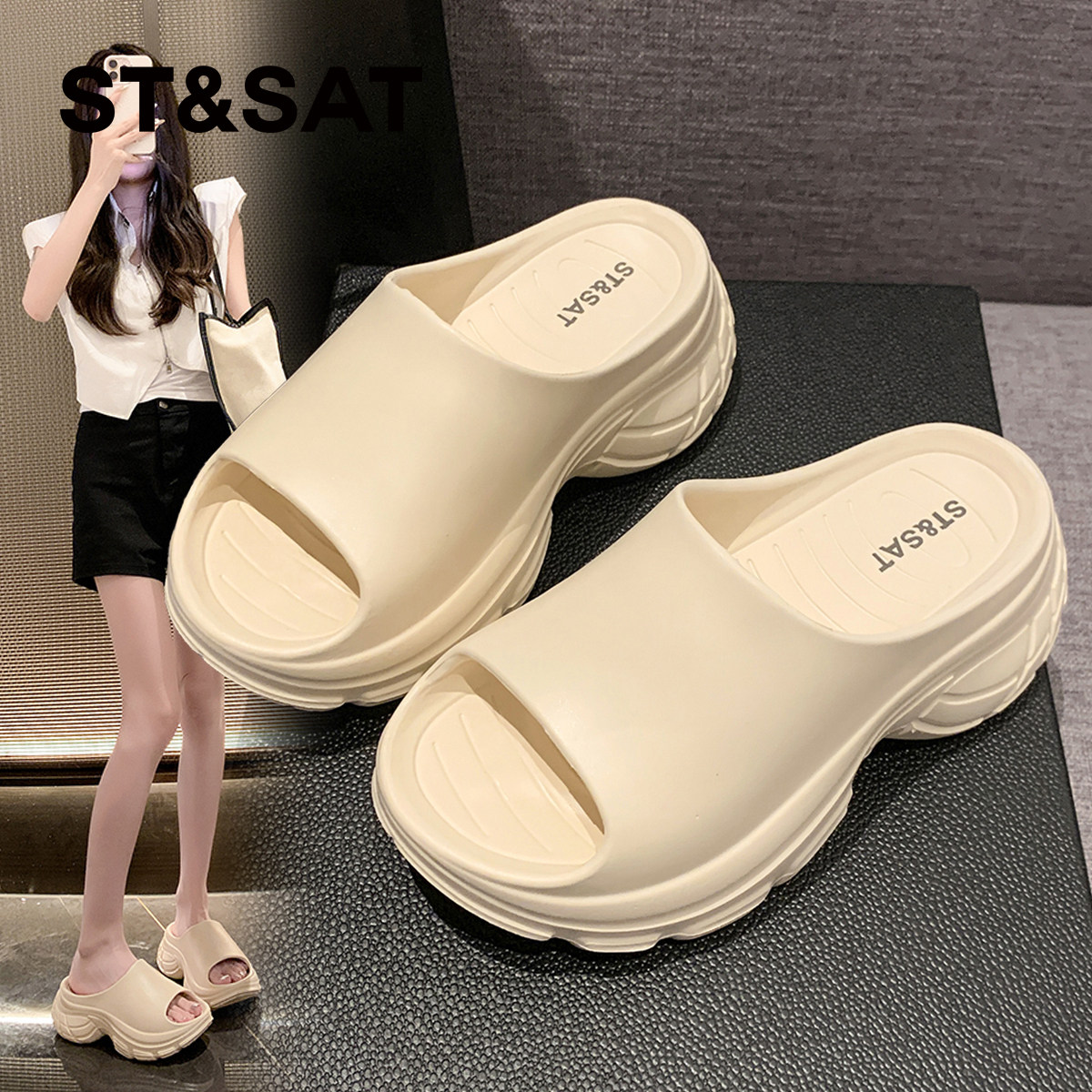 星期六厚底拖鞋女外穿夏2025新款女士时尚松糕一字拖配裙子凉拖鞋