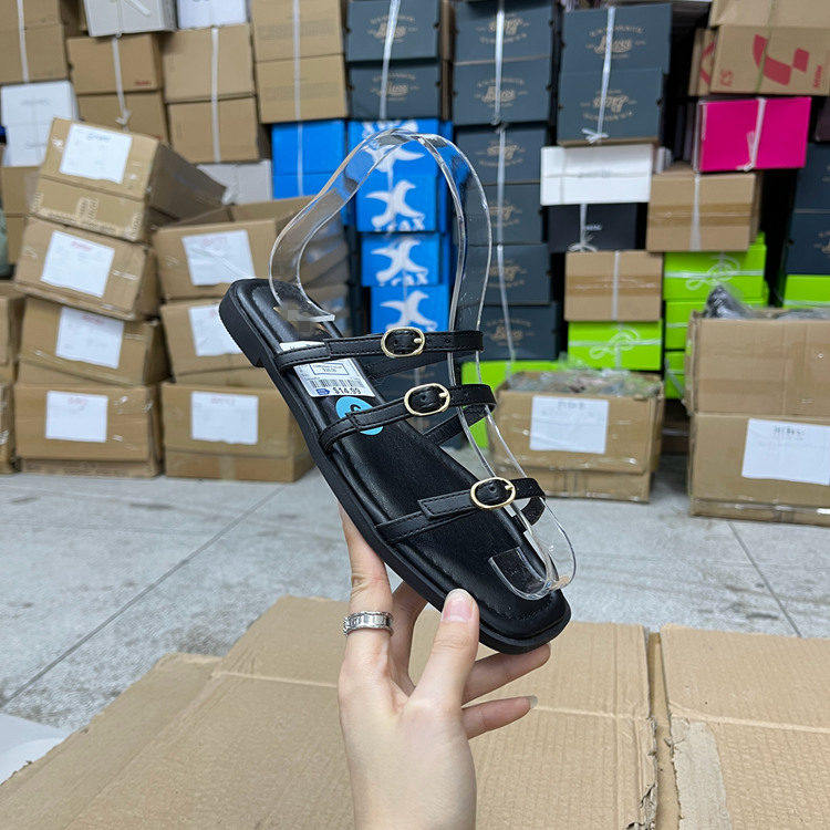 外贸原单方头平底皮带扣拖鞋舒适休闲百搭露趾日常外穿简约新款