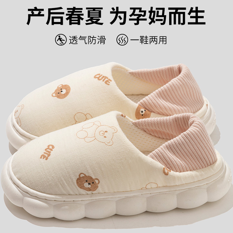 月子鞋春秋夏季薄款89月份包跟软底防滑产妇孕妇产后家居棉拖鞋女