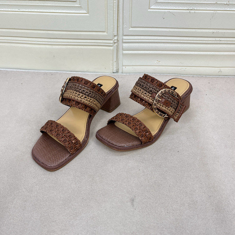 外贸原单方头编织粗跟皮带扣凉鞋时尚新款shoes露趾高跟拖鞋优惠