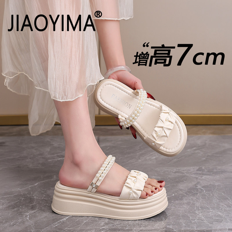 7CM厚底凉拖鞋女外穿2026新款夏季配裙子增高仙女风海边沙滩凉鞋
