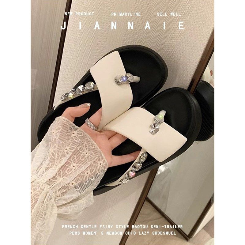 大码女鞋41-43凉拖鞋女夏外穿可可泡芙水钻夹脚厚底凉鞋沙滩拖鞋