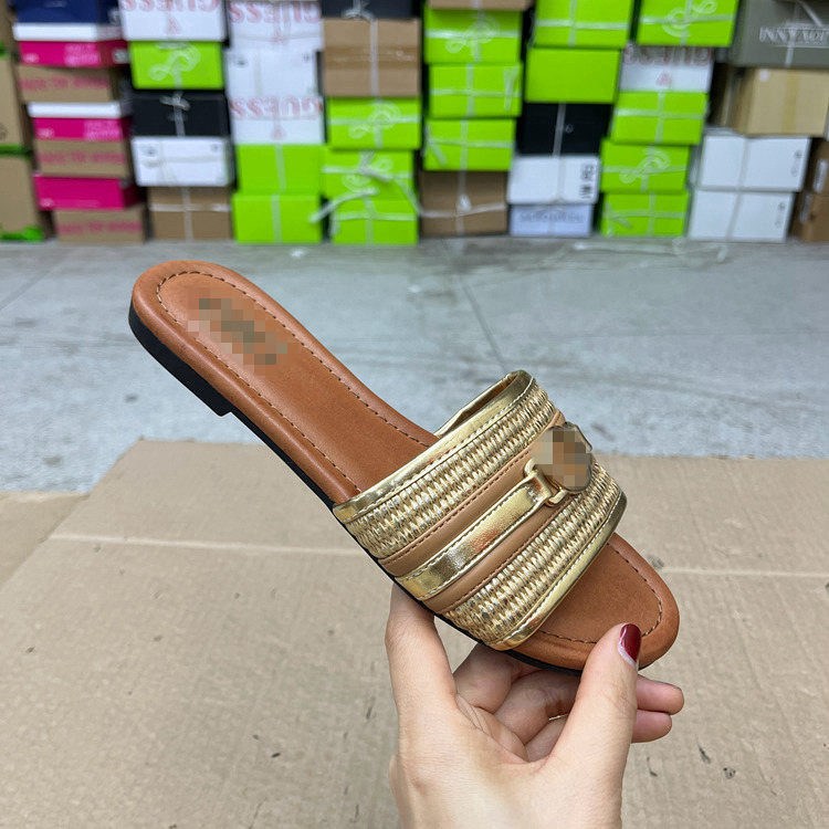 外贸原单女鞋新款shoes圆头平底时尚百搭舒适简约休闲外穿凉拖鞋