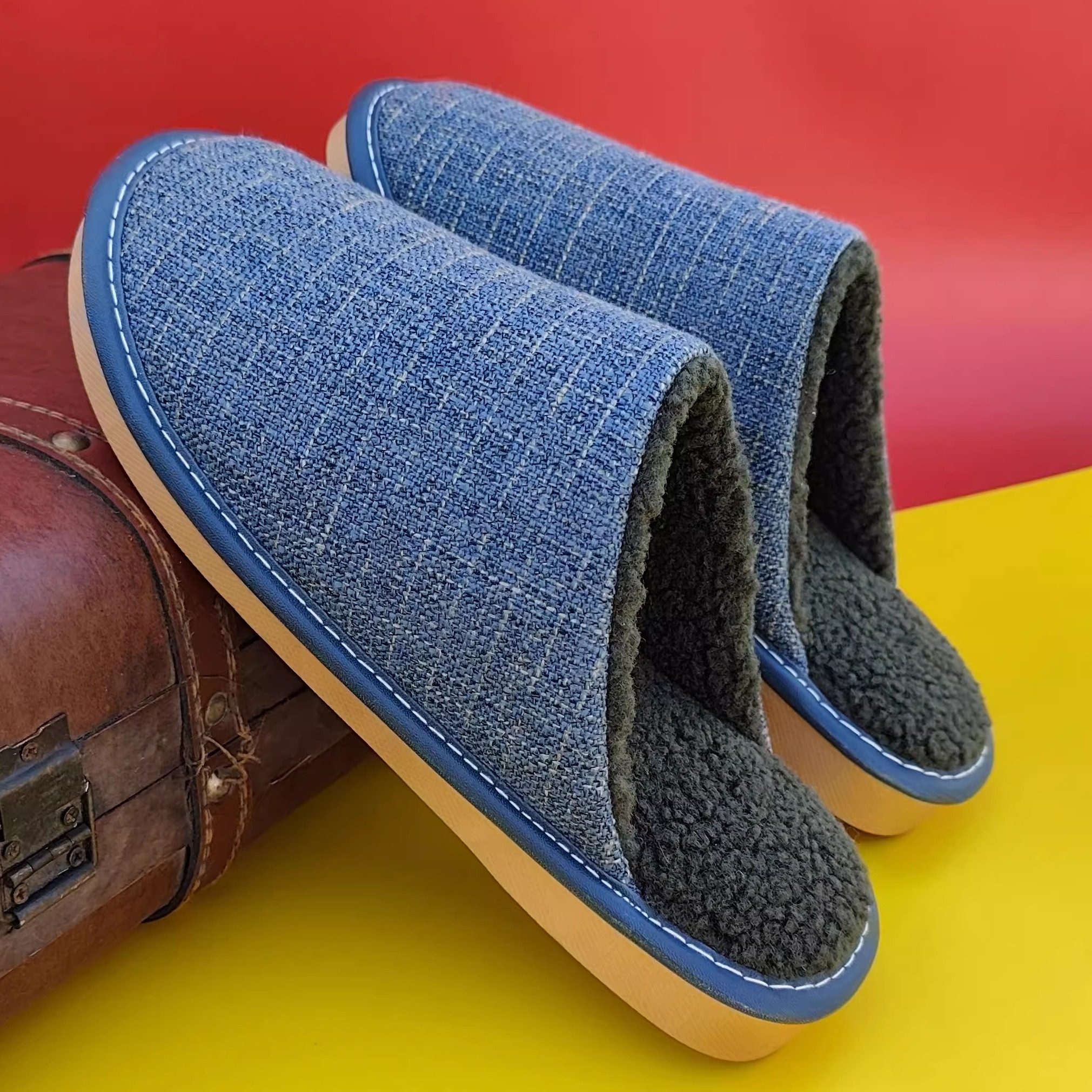 爸妈防滑拖鞋老人棉麻织布包头男女居家暖毛绒内里地板裹脚拖鞋冬