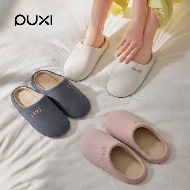 朴西秋冬季保暖棉拖鞋女新款居家防滑室内静音加厚简约情侣棉鞋男