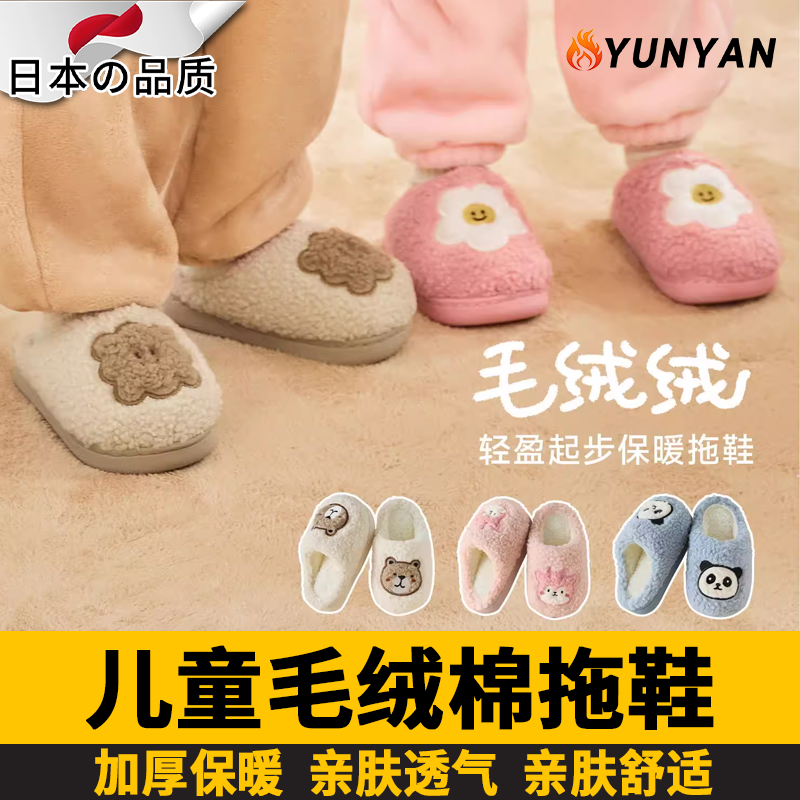 日本儿童棉拖鞋秋冬宝宝室内拖鞋棉鞋保暖防滑家居鞋男童女