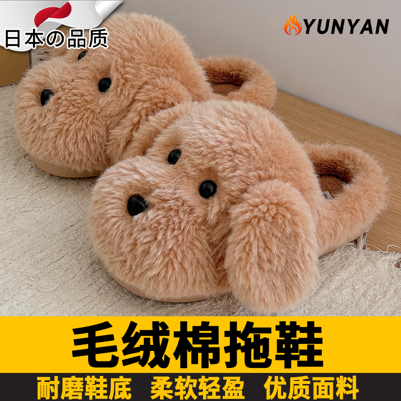 日本棉拖鞋女秋冬季2025新款防滑厚底加绒保暖百搭可爱毛毛绒月子