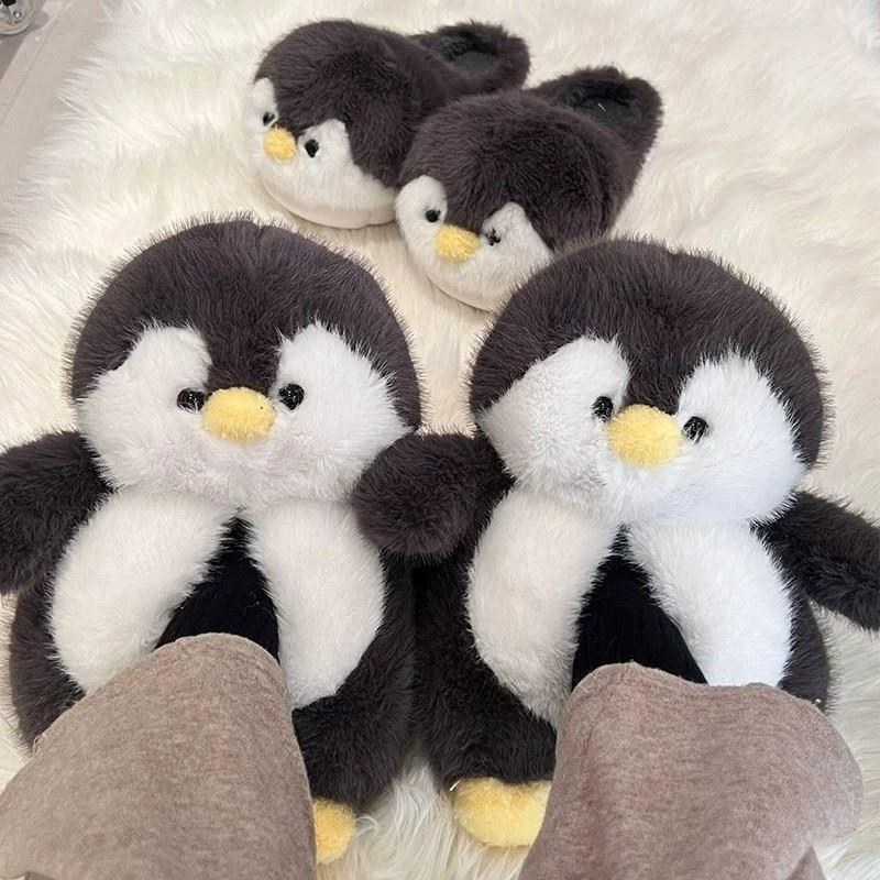 冬日可爱企鹅拖鞋女秋冬款加绒保暖室内外居家毛拖月子保暖鞋
