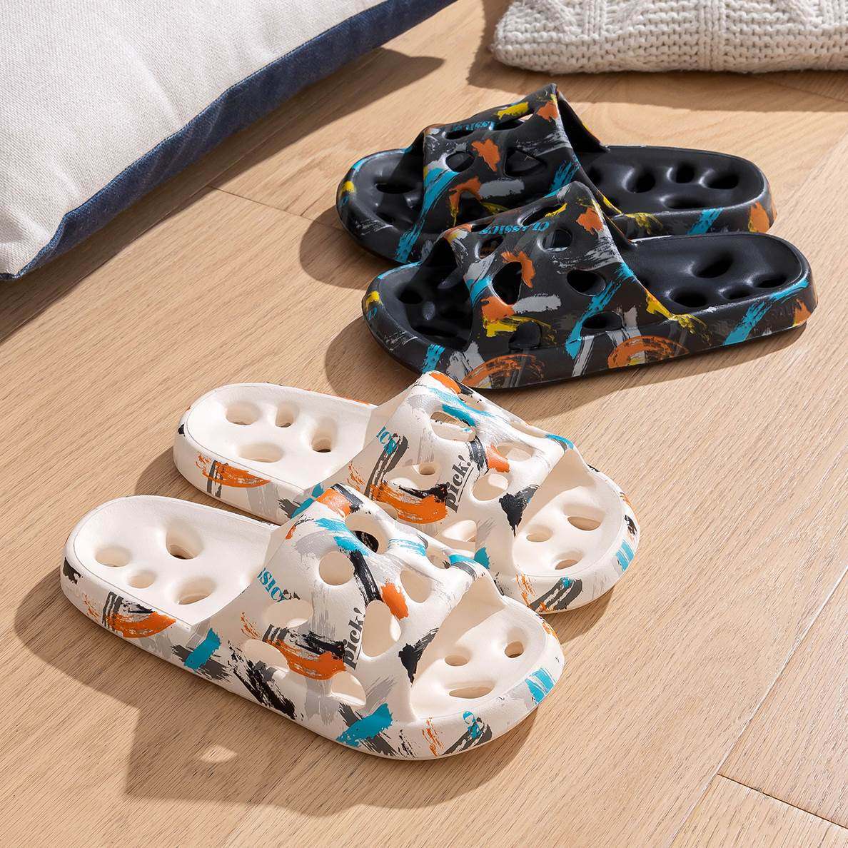居家防滑凉拖鞋男夏季浴室拖鞋女速干涂鸦踩屎感室内时尚漏水洗澡