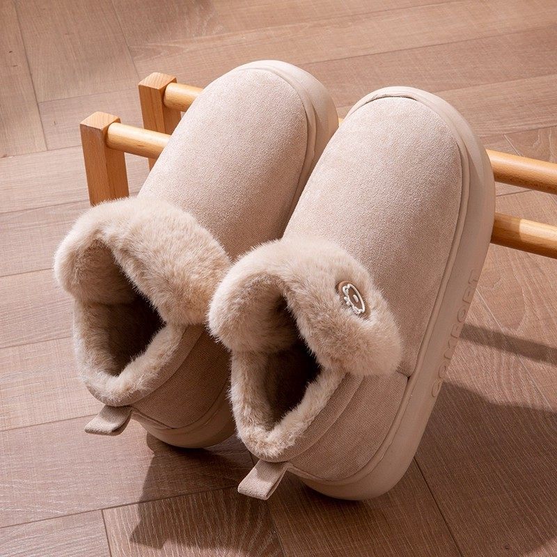 棉拖鞋秋冬款加绒加厚女款雪地靴包跟外穿踩屎感毛毛绒男士厚底