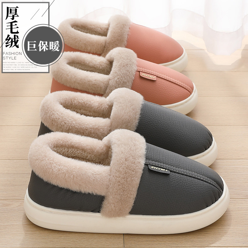 朴西冬季防水棉拖鞋女加绒保暖室内家居可拆卸厚底防滑情侣棉拖男 黑色 【柔软棉绒内胆】 36-37 (适合3536)