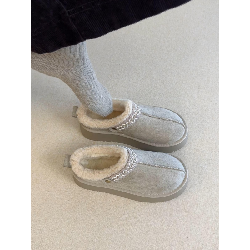 厚底加绒保暖勃肯鞋雪地靴女半拖鞋棉鞋2025冬季新款外穿毛毛拖鞋