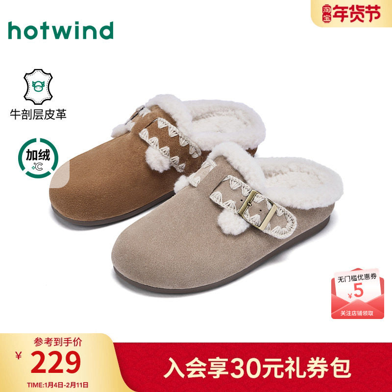 热风加绒勃肯鞋女2025年冬季新款复古毛毛鞋百搭包头拖休闲半拖鞋