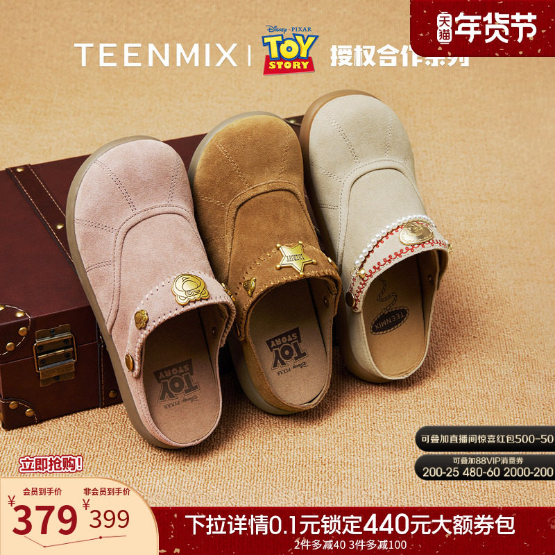 天美意玩具总动员联名胡迪沙发勃肯软底包头半拖鞋女秋新款凉拖鞋