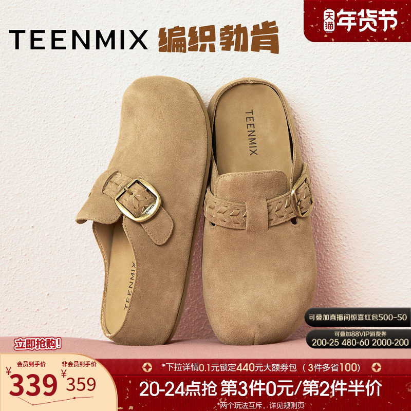 天美意2025秋新款商场同款纯色百搭复古半拖鞋女勃肯鞋BJ551AM5
