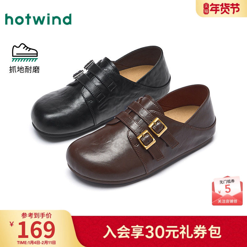 热风黑色小皮鞋女款2026年春季新款百搭两穿勃肯鞋休闲包头拖鞋子