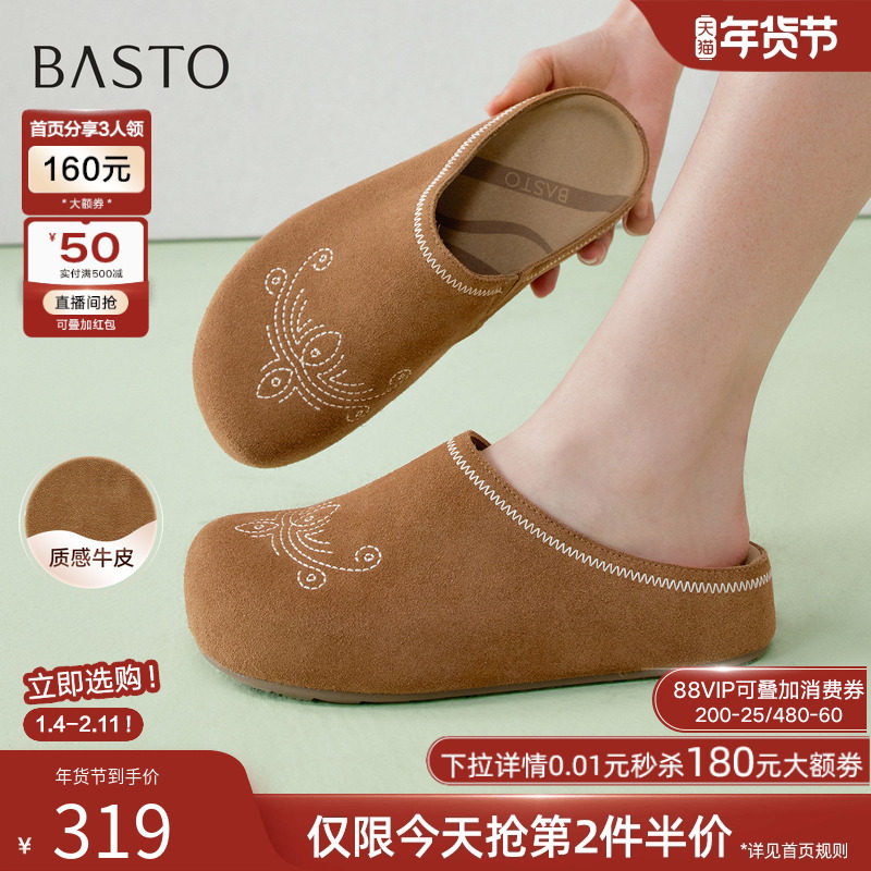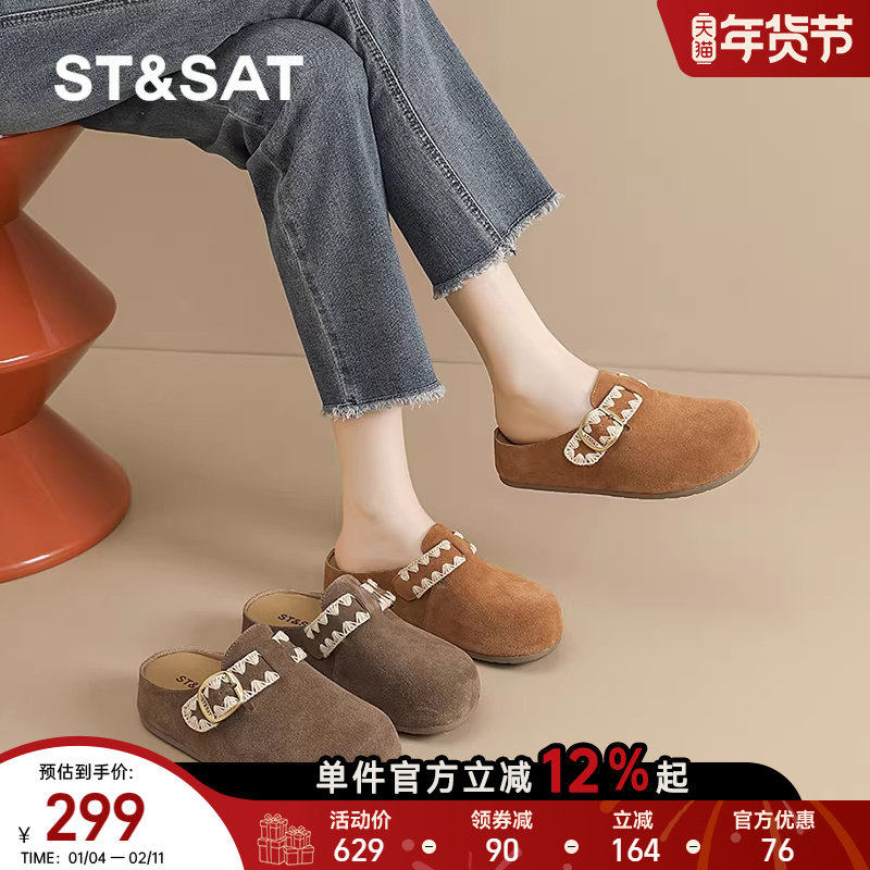百思图2026春季新款勃肯鞋包头外穿拖鞋复古休闲女半拖T1718AH6