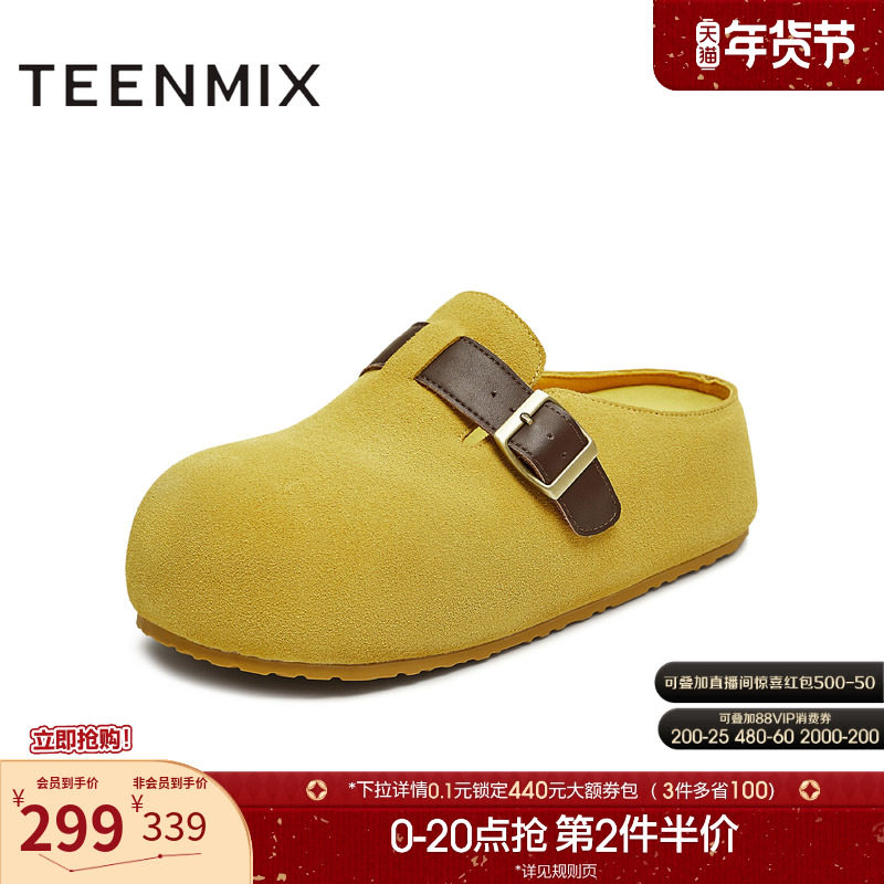 天美意复古黄色厚底增高大头勃肯包头半拖鞋女外穿凉拖2025秋新款