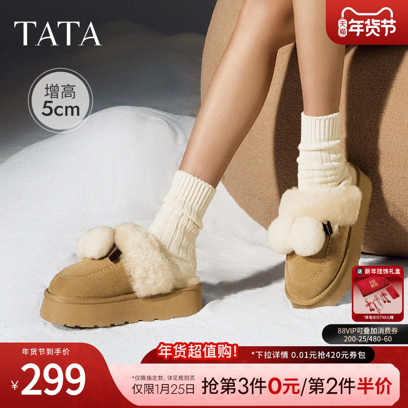 TATA他她雪绒花加绒厚底毛毛拖鞋女鞋保暖棉拖雪地靴冬季CEK01CH4