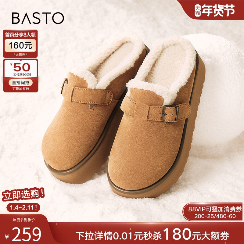 百思图冬商场新款真皮厚底雪地靴保暖勃肯拖鞋棉鞋女L3828DM4