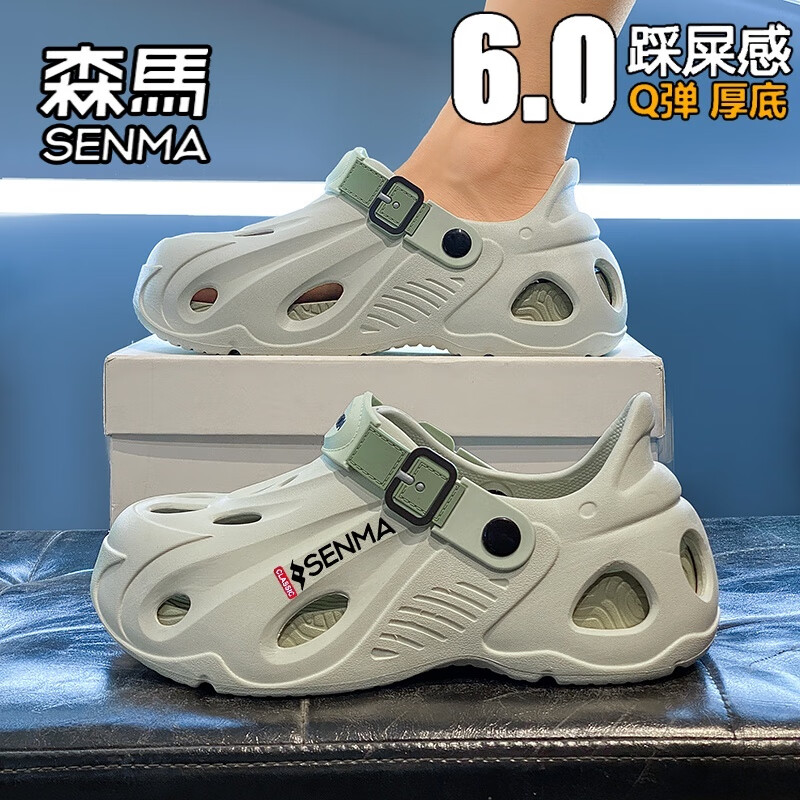 森馬洞洞鞋男款夏季外穿开车防滑防臭包头拖鞋踩屎感运动厚底沙滩凉鞋 薄荷绿(百搭旗舰款) 42 -43