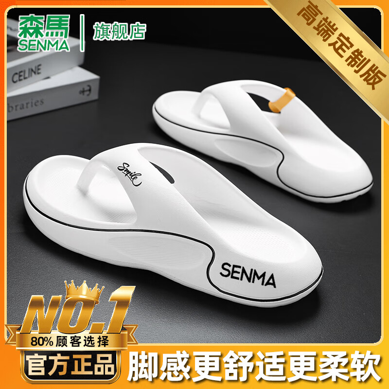 森馬拖鞋男夏季外穿潮流防滑沙滩软底人字拖青少年室内外踩屎感夹脚拖 白色【升级款】 40-41