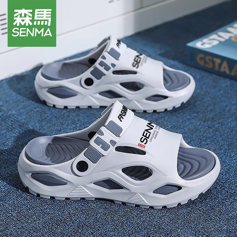 森馬洞洞鞋男款夏季潮流外穿防滑厚底踩屎感全包椰子拖鞋海边沙滩凉鞋 灰色 【基础款】 38