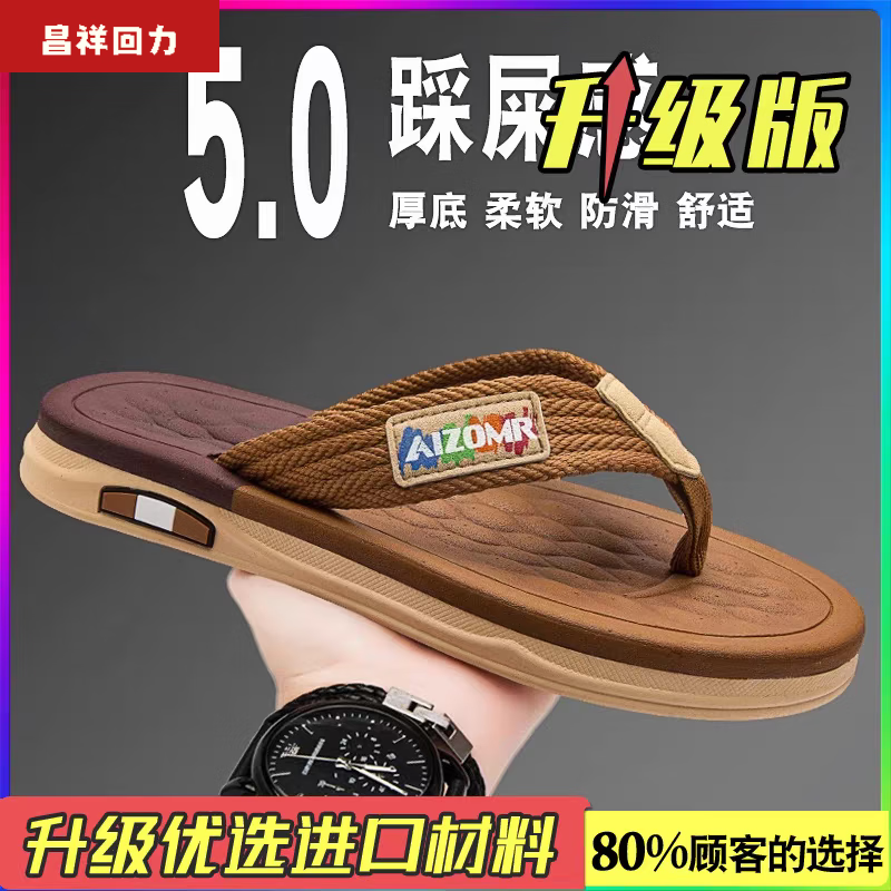 焗潭越南泰国橡胶士人字拖鞋耐磨轮胎防滑防臭沙滩鞋进口两穿凉鞋 【男凉】越南橡胶【棕底+棕带】 43 (260mm) 9号