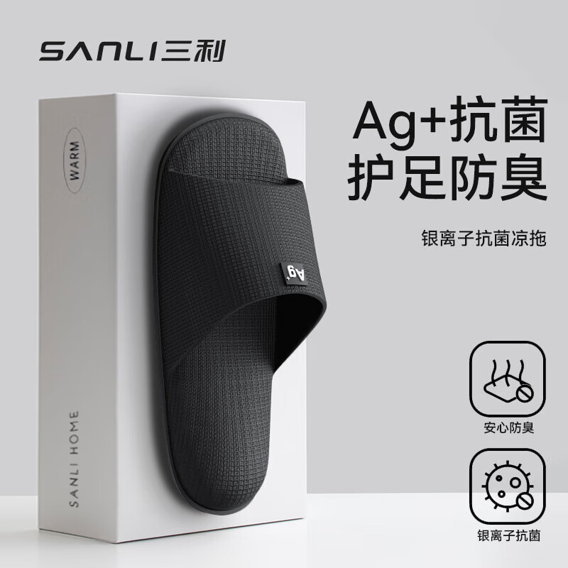 三利sanli抗菌拖鞋防滑室内家居凉拖鞋男士女浴室外穿夏 黑色 44-45 【适合43-44】