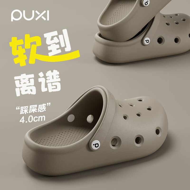 朴西2025夏季新款女士eva洞洞鞋外穿防滑厚底不臭脚包头拖鞋情侣款男 卡其色 40-41