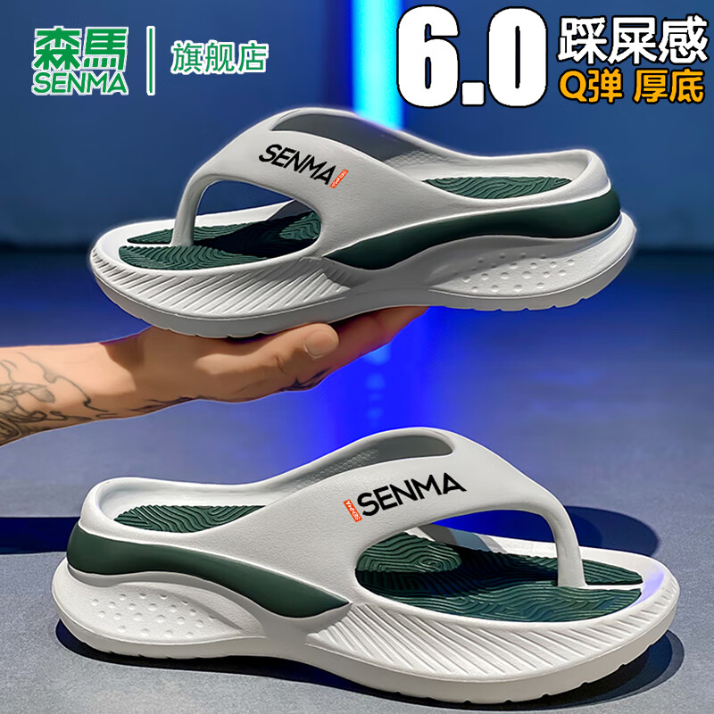森馬防滑拖鞋男夏季2025新款软底踩屎感休闲夹趾沙滩鞋外穿防臭人字拖 白绿 42 -43