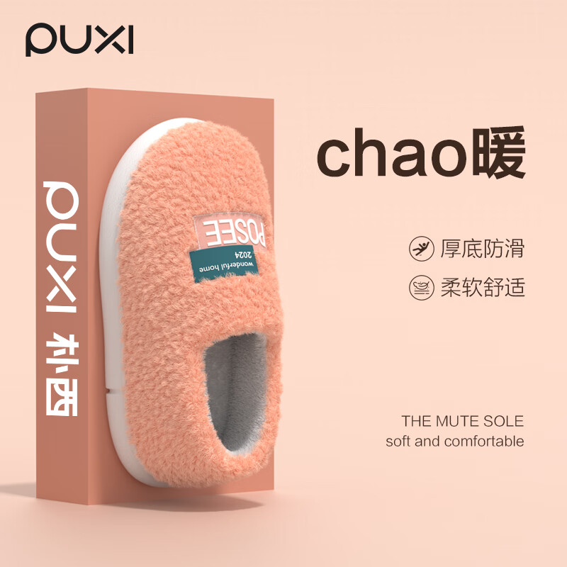 朴西冬季包跟棉拖鞋女士厚底保暖防滑室内家居月子鞋产后情侣款男 西瓜粉 38-39