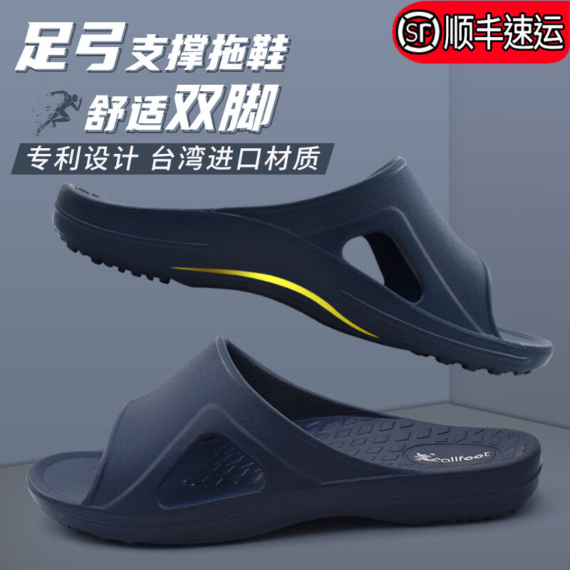 华宝驰足弓拖鞋男女足弓支撑凉拖扁平平板平底儿童外穿舒适足脚夏季 藏青色(男款) 44-45 (275mm) (男士43-44码脚)