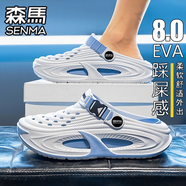 森馬洞洞鞋男款夏季2026新款外穿厚底踩屎感包头拖鞋开车运动沙滩凉鞋 白蓝 【基础款】 43 (42-43 同码)