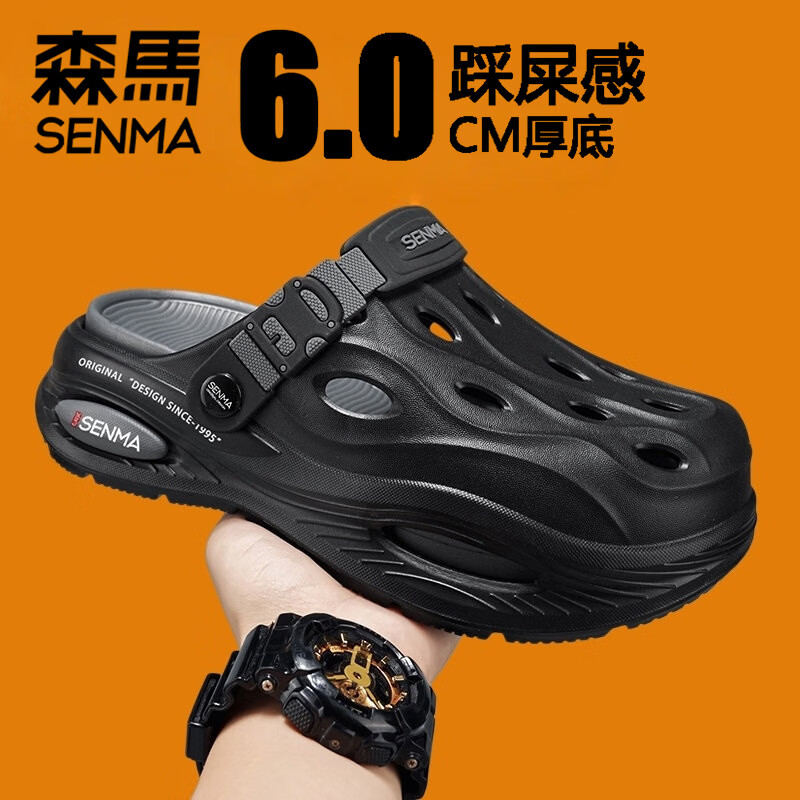 森馬洞洞鞋男款夏季2026新款外穿厚底踩屎感包头拖鞋开车溯溪沙滩凉鞋 黑灰 【基础款】 43 (42-43 同码)