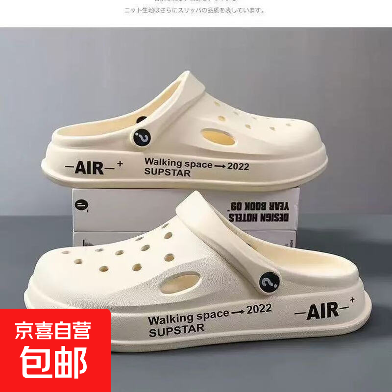 洞洞鞋男士厚底拖鞋包头医用外穿居家凉拖防滑休闲软底情侣沙滩鞋 米色 -光版 42 -43【适合41-42脚】