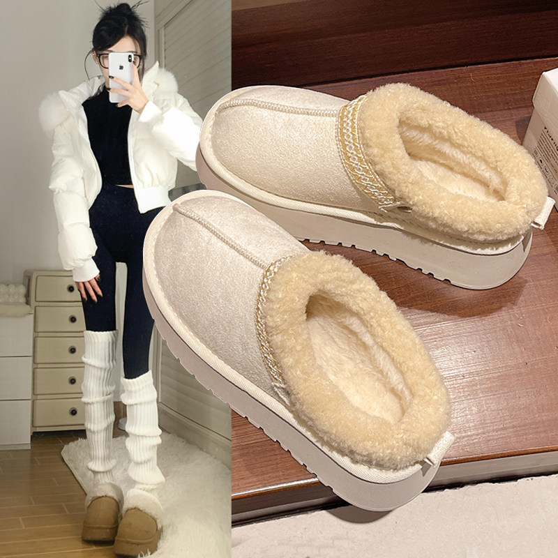 厚底加绒雪地靴女冬外穿2025一脚蹬包头半拖毛毛棉拖鞋加厚大棉鞋