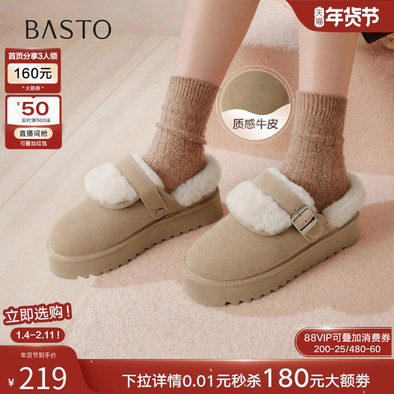 百思图2025冬季新款厚底毛毛鞋棉鞋雪地靴加绒保暖女拖鞋CO810DH5