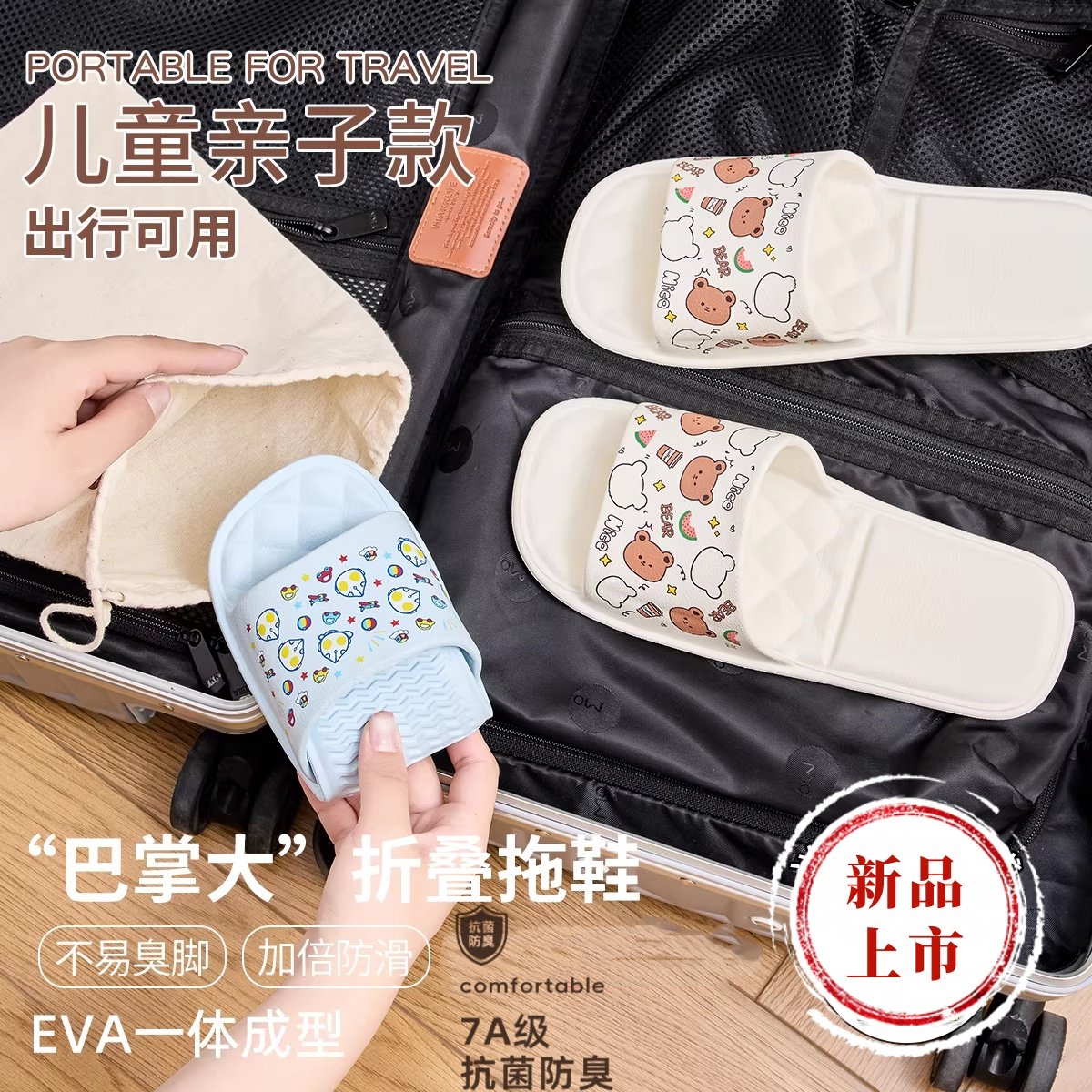 奥特曼印花儿童拖鞋男大童夏季室内防滑浴室旅行折叠亲子凉拖鞋女